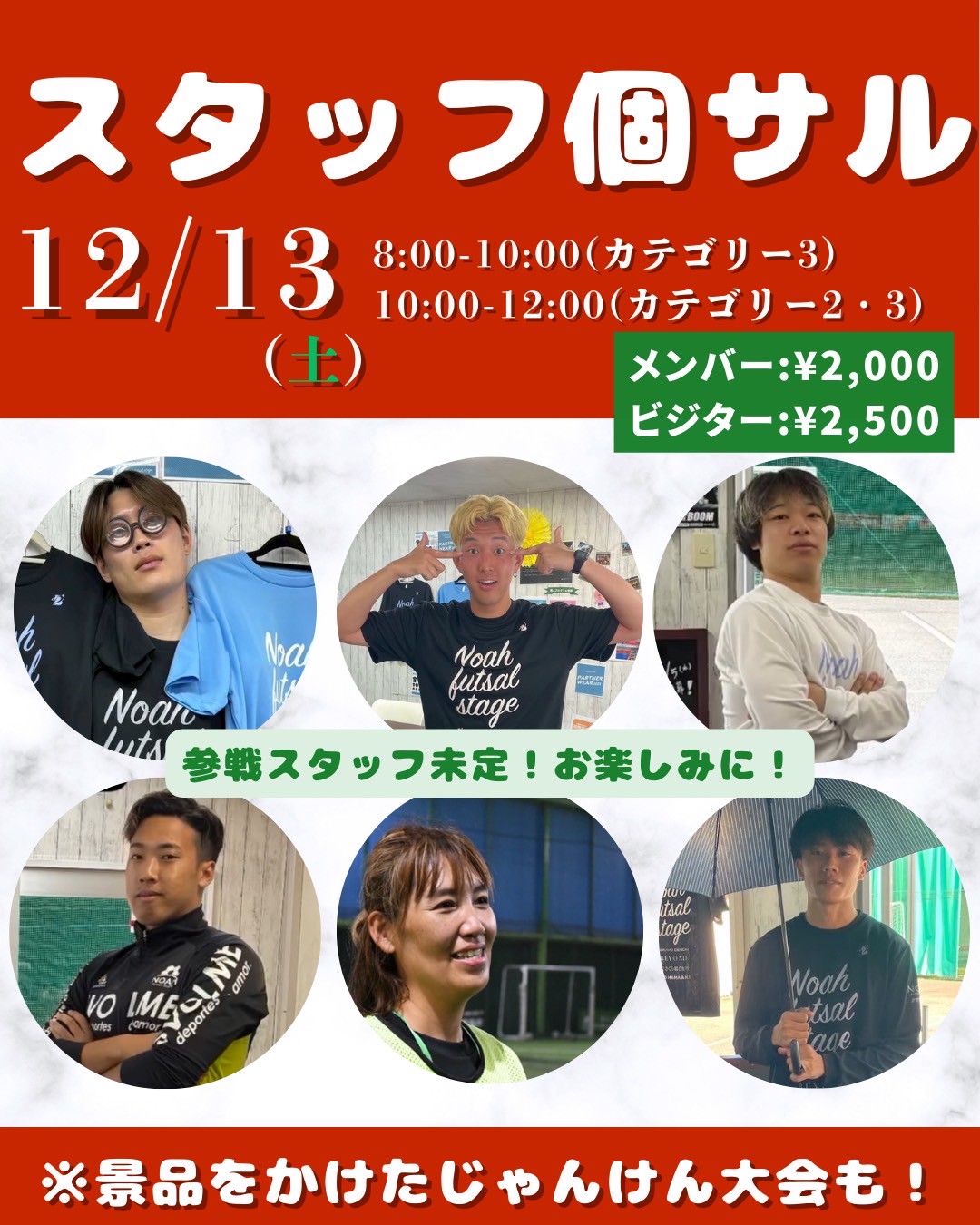 EVENT/NEWS 2025/11/26 EVENT/個人 スタッフ個サル Checkスタッフ個サル@姫路 スタッフ個サル スタッフ個サル激闘!?あのスタッフには負けられない! たくさんのスタッフが個サルに参戦★ 一緒にボールを蹴りましょう(^^♪ 料金:ビジター¥2.500/メンバー¥2.000 Check