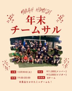 EVENT/NEWS 2025/11/26 EVENT/大会 年末チームサル Check年末チームサル@姫路 年末チームサル 今年もやってきました!年末恒例チームサル! みんな誘ってご参加ください! 忘年会ならぬ忘年フットサル! 是非お待ちしております! 料金:メンバー11,000円 ビジター13,000円 Check